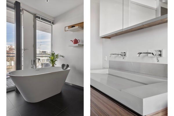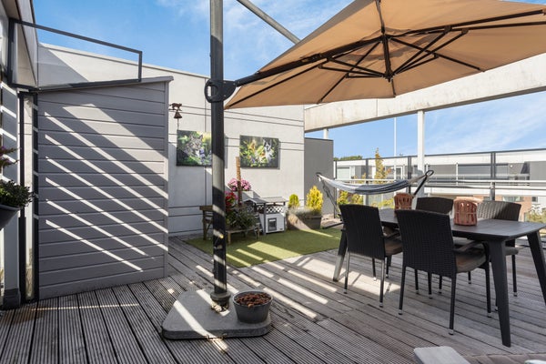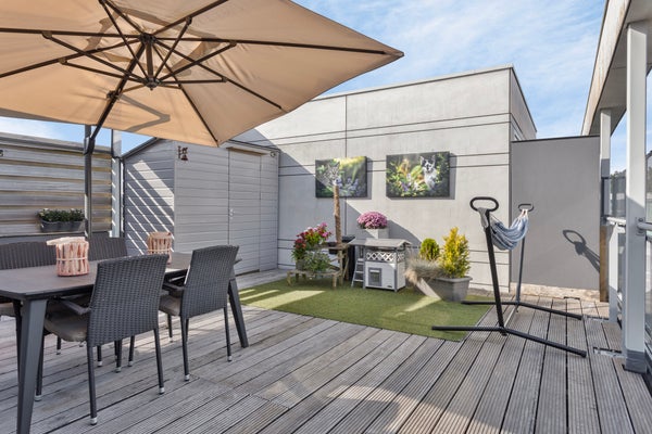 - De woning beschikt onder andere over de volgende voorzieningen: Airconditioning, Bad, Glasvezelaansluiting, Mechanische ventilatie, Buitenzonwering, Dakterras, Douche, Bergruimte, Toilet, Wasruimte.