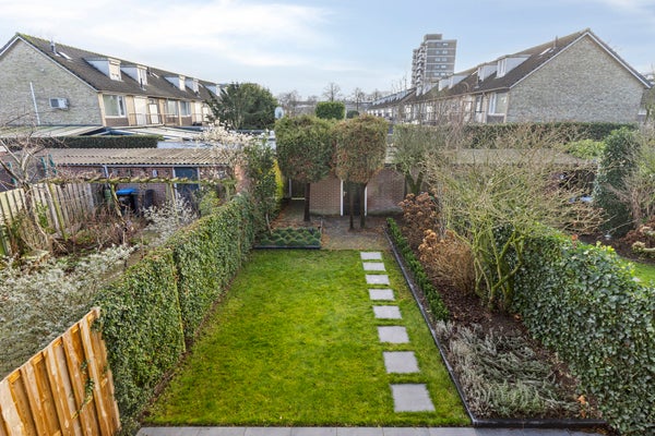 De woning beschikt over een diepe voor- en achtertuin. De achtertuin is onderhoudsvriendelijk aangelegd en voorzien van een royaal terras van circa 30 m² met hoogwaardige keramische tegels. Dankzij de automatische zonneluifel kun je hier comfortabel in de schaduw zitten. Daarnaast zijn voorzieningen voor elektra aanwezig, bijvoorbeeld voor tuinverlichting. Een berging en een achterom maken het geheel compleet!