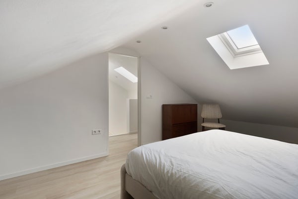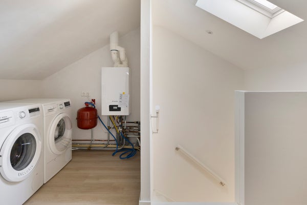Via een vaste trap bereik je deze fijne lichte verdieping. Hier bevindt zich de 4e slaapkamer: ideaal als ouderslaapkamer, thuiswerkplek of logeerkamer. Tevens zijn hier de aansluitingen voor de wasapparatuur aanwezig en is de nieuwe cv-ketel (2024) geplaatst, die eenvoudig te bedienen is via de Remeha-app.