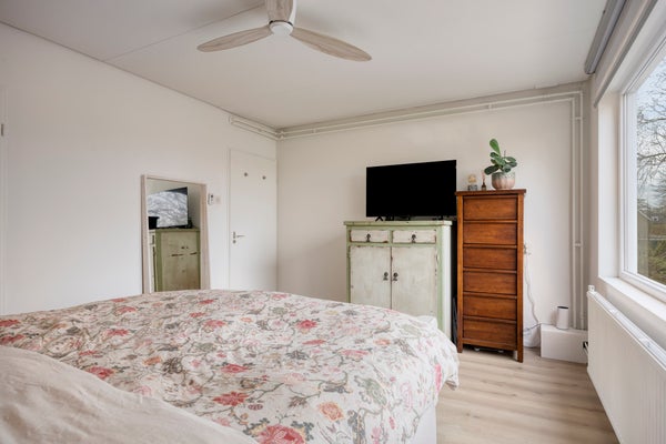 De verdieping telt vier slaapkamers. Alle kamers zijn voorzien van nieuwe kozijnen en beglazing. 2 Kamers zijn voorzien van 2 vaste inbouwkasten, en 1 slaapkamer aan de achterzijde geeft toegang tot het balkon. Tevens is er separate wasruimte met omvormer t.b.v. zonnepanelen en aansluiting voor de wasapparatuur.