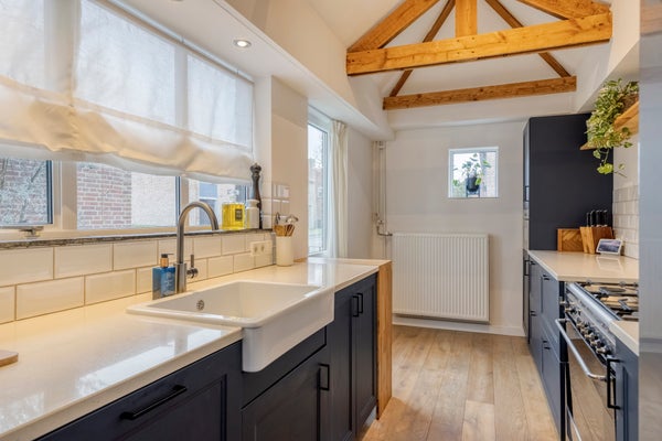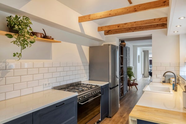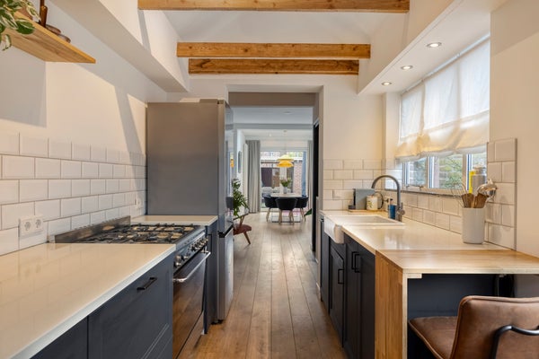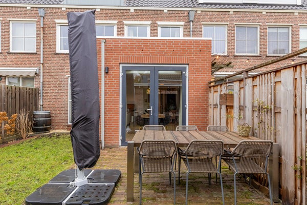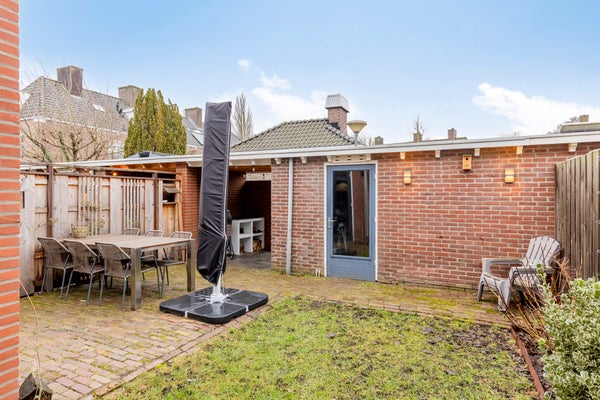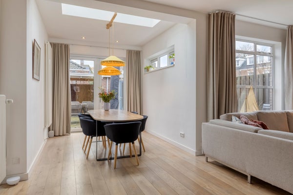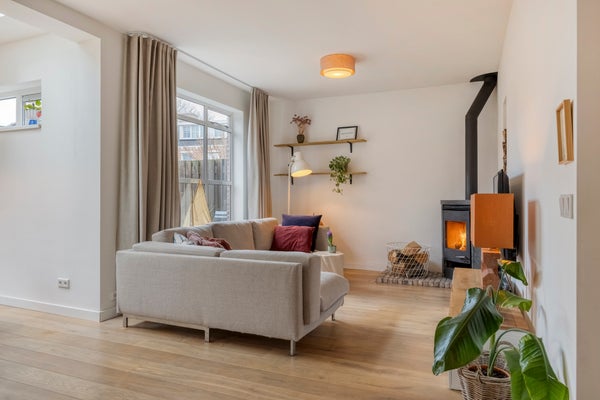Deze karakteristiek uitgevoerd woonhuis, gelegen in een rustige en kindvriendelijke wijk, heeft een voortuin en een zonnige achtertuin met terras en gazon. De indeling begint op de begane grond met een sfeervolle woonkamer die aan de achterzijde is uitgebouwd en veel lichtinval biedt door grote ramen. De moderne keuken aan de voorzijde beschikt over luxe inbouwapparatuur en eiken planken vloeren. Op de eerste verdieping zijn er drie slaapkamers en een luxe badkamer met ligbad en inloopdouche. Via een vaste trap bereik je de zolder met een ruime voorzolder en een vierde slaapkamer. De stenen berging heeft elektra, en de woning is recent gemoderniseerd met een nieuw dak en een nieuwe keuken. Met een woonoppervlakte van 117 m² en energielabel C, biedt deze woning veel voorzieningen op korte afstand.