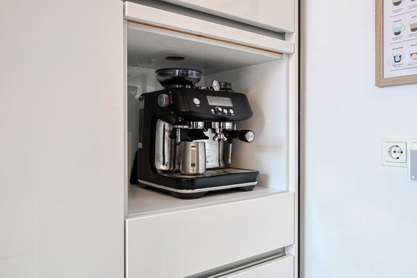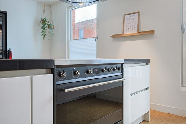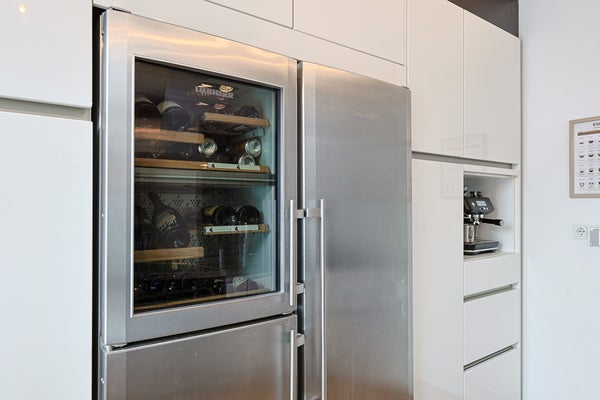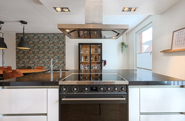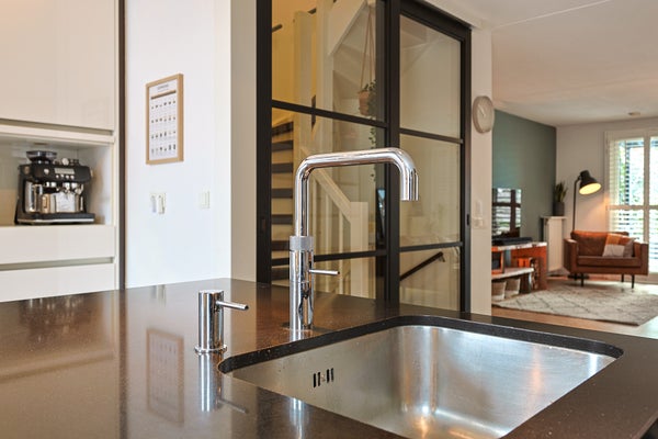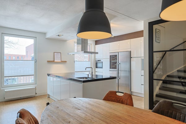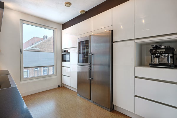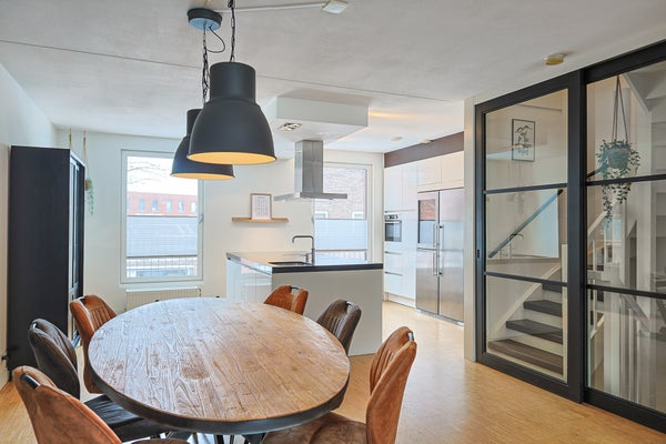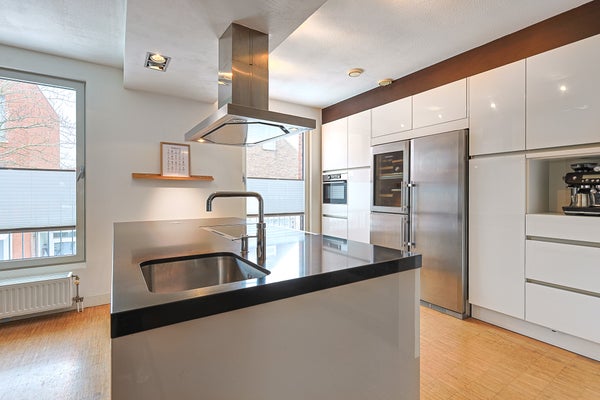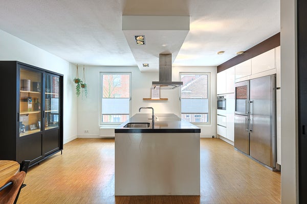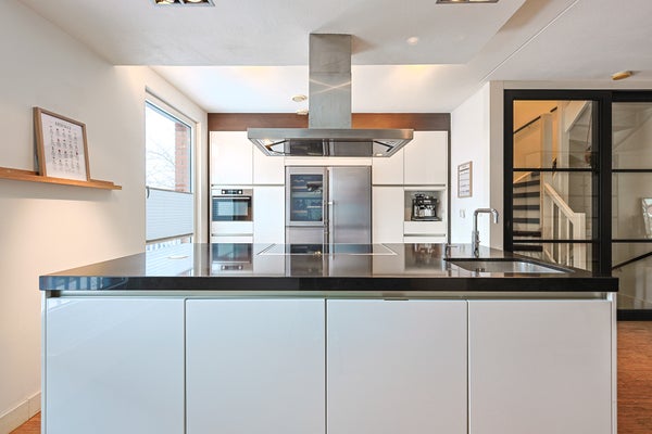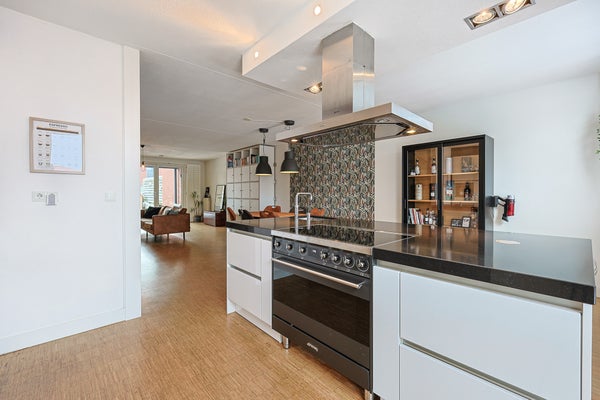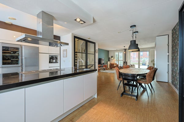 De keuken is ruim opgezet en voorzien van een kook- en spoeleiland. In 2022 is de keuken deels gerenoveerd, waarbij het gasfornuis is vervangen door een 5-zone inductiekookplaat en een nieuwe combi oven/magnetron is geplaatst. De keuken beschikt verder over een Smeg oven, een dubbele koelkast van Liebherr met wijnkoelkast en vriezer, een Quooker en veel opbergruimte. Stopcontacten in het werkblad, een ingebouwde zeeppomp en twee grote kiep-kantelramen maken het geheel praktisch en comfortabel. In december 2025 zijn de Quooker en kranen vernieuwd.