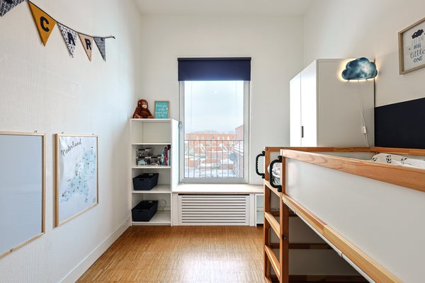 Vergelijkbaar met slaapkamer 3 en voorzien van een ombouw rondom de verwarming, die tevens als zitje kan worden gebruikt.