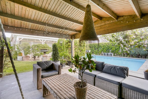 - De woning beschikt onder andere over de volgende voorzieningen: Bad, Buitenzonwering, Douche, Schuifdeuren, Bergruimte, Zwembad, Toilet.