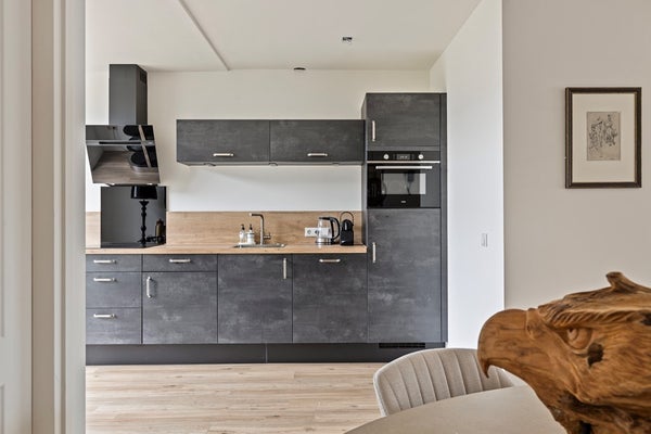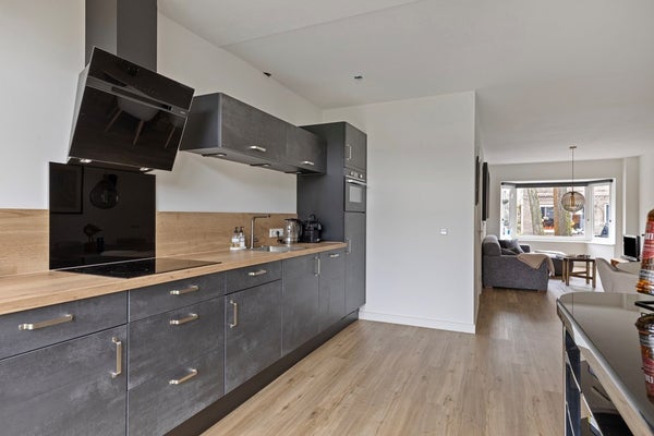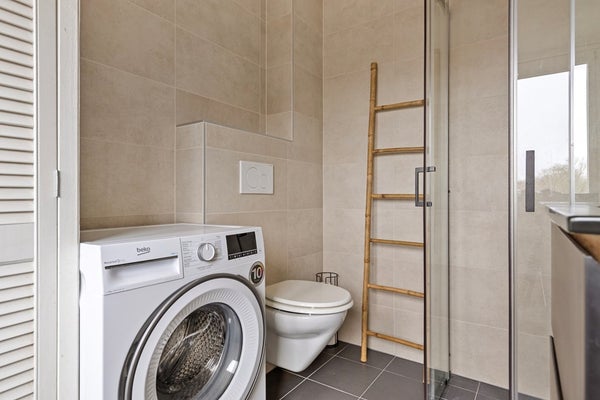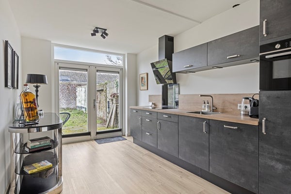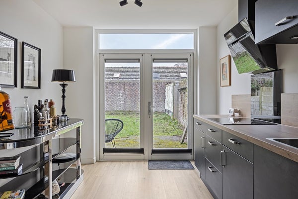 De keuken sluit aan op de leefruimte en biedt een praktische indeling en beschikt over een afzuigkap, koelkast, vaatwasser en inductiekookplaat. Aansluitend bevindt zich een extra ruimte die ideaal te gebruiken is als kantoor, speelkamer of bijkeuken.