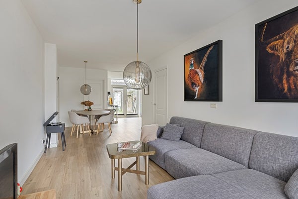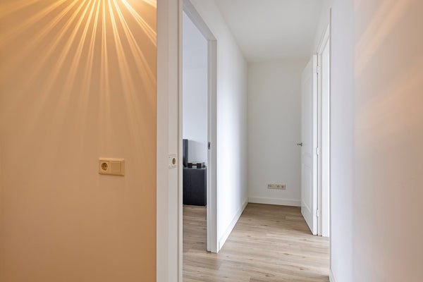 Via de entree kom je in de hal met inbouwkasten en toegang tot het toilet. De woonkamer is licht en ruim opgezet en vormt het hart van de woning.