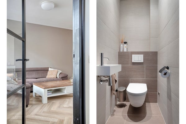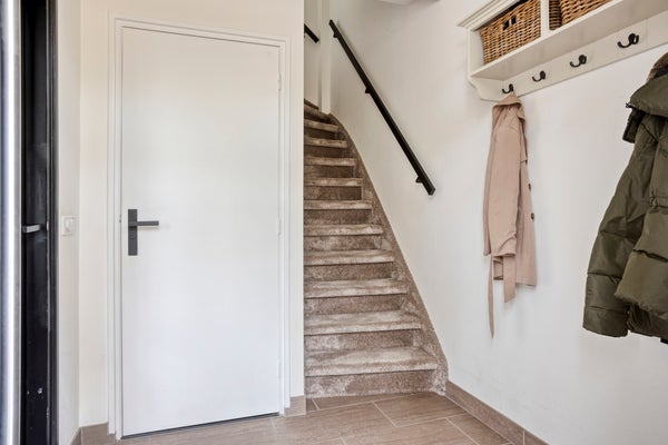 Via de verzorgde voortuin bereik je de entree. De hal biedt toegang tot een moderne toiletruimte, trapopgang en de ruime woonkamer.