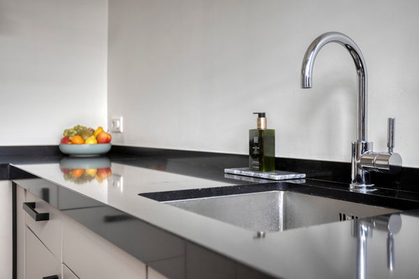 - Moderne keuken in U-opstelling met inbouwapparatuur;