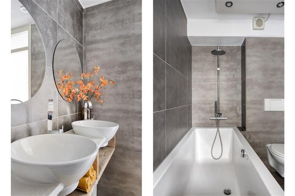 De eerste verdieping heeft maar liefst vier fijne slaapkamers. Hier vind je ook de badkamer die van alle gemakken is voorzien: een ligbad voor die relaxmomenten, een dubbele wastafel zodat je nooit 'in de file' staat, en een toilet. Zo houd je de ochtendroutine voor iedereen stressvrij.