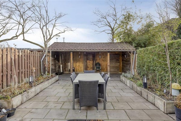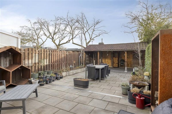 - Diepe zonnige achtertuin met overkapping en een royaal dakterras met kweekkas.