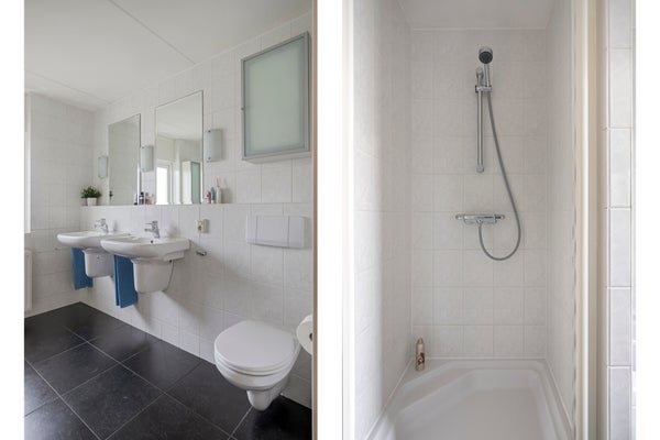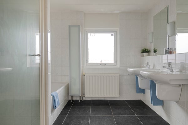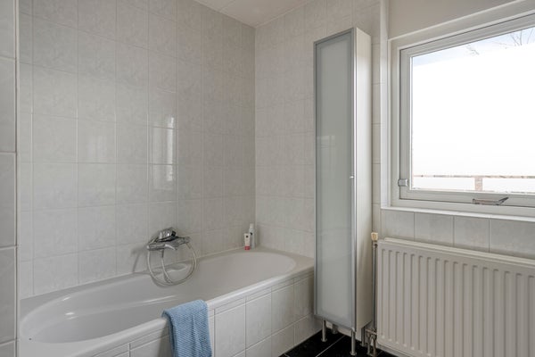 Op de eerste verdieping bevinden zich 3 prettige, ruime slaapkamers die een mooie lichtinval genieten. De grote badkamer is volledig betegeld en compleet uitgerust met een ligbad, douchecabine, dubbele wastafel en een tweede toilet.