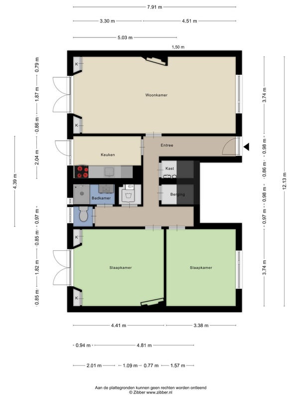 Twee ruime slaapkamers (ca. 13 m² en 17 m²)