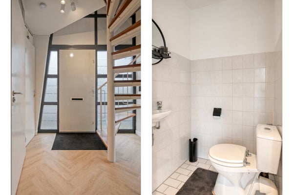 Via de royale voortuin bereik je de entree van de woning. In de hal bevinden zich de meterkast, het toilet en de trapopgang naar de verdiepingen. Vanuit hier stap je de royale woonkamer binnen.