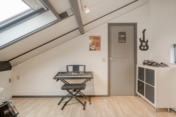 De tweede verdieping verrast door de ruimte en veelzijdigheid. Hier bevindt zich de vierde slaapkamer, ideaal als master bedroom, thuiskantoor of tienerkamer. Dankzij de dakconstructie en het daglicht is dit een prettige, volwaardige leefruimte.