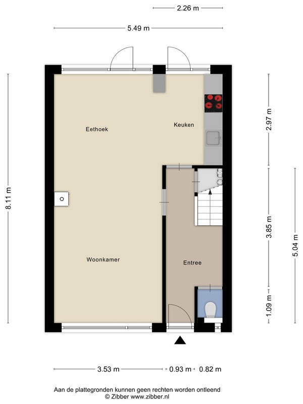 - De tussenwoning heeft een woonoppervlakte van 110 m² en beschikt over 4 kamers;
