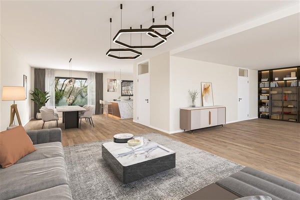 De begane grond voelt licht, heerlijk open en praktisch ingedeeld. De royale woonkamer met grote raampartijen aan de tuinzijde vormt het rustige hart van het huis. Het uitzicht op de achtertuin op het zonnige zuiden haalt de natuur als het ware naar binnen. Hier geniet je iedere dag van het mooie lichtinval en het groen van de bomen en struiken in je eigen tuin. Zo begint iedere dag een beetje magisch.