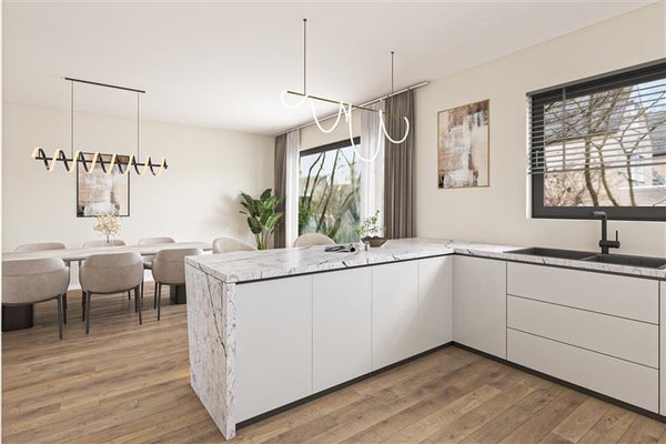 De keuken is aan de voorzijde gelegen en biedt alle ruimte om jouw culinaire creativiteit tot leven te brengen. Wellicht kies je ervoor om deze ruimte volledig naar eigen wens te moderniseren; de mogelijkheden zijn eindeloos.