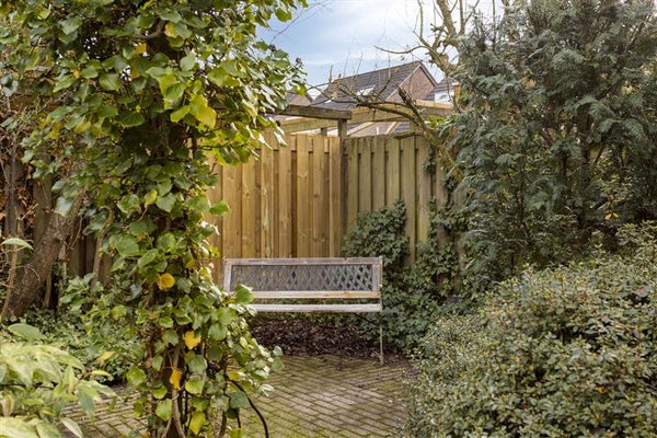 Grote achtertuin op het zuiden, ideaal voor lange zomeravonden, barbecues of gewoon ontspannen met een goed boek.