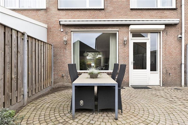 De achtertuin is betegeld en onderhoudsarm, ideaal voor gezinnen met een druk leven. De extra brede poort biedt zelfs ruimte om een fiets, bakfiets of andere spullen eenvoudig van en naar de tuin te brengen. Achterin de tuin vind je een grote berging, perfect voor al jouw opslagbehoeften.