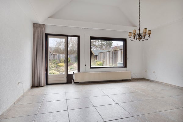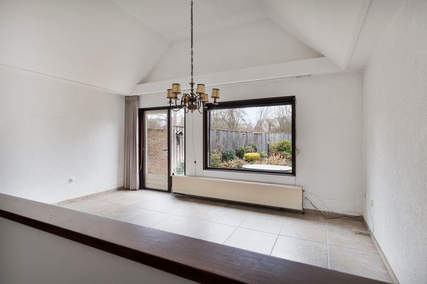 De lichte woonkamer is ruim van opzet en heeft een prettige verbinding met de tuin. Dankzij de grote raampartij en de tuindeur is er veel daglicht en een fijn zicht op het groen. De woonkamer biedt 100% privacy en prachtig uitzicht over de royale achtertuin.