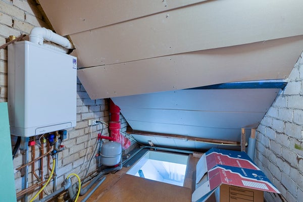 Via een vaste trap is de zolder bereikbaar. Deze ruimte biedt aanvullende gebruiksmogelijkheden, bijvoorbeeld als bergruimte of extra kamer, afhankelijk van de wensen van de gebruiker.