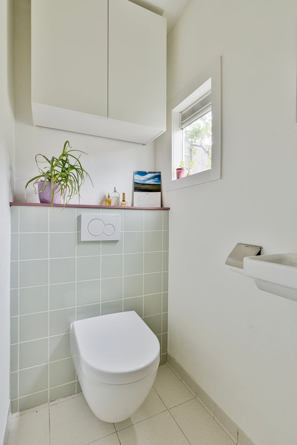 Het toilet is vernieuwd en uitgerust met een hangcloset, fonteintje, designradiator en een raam voor natuurlijke ventilatie.