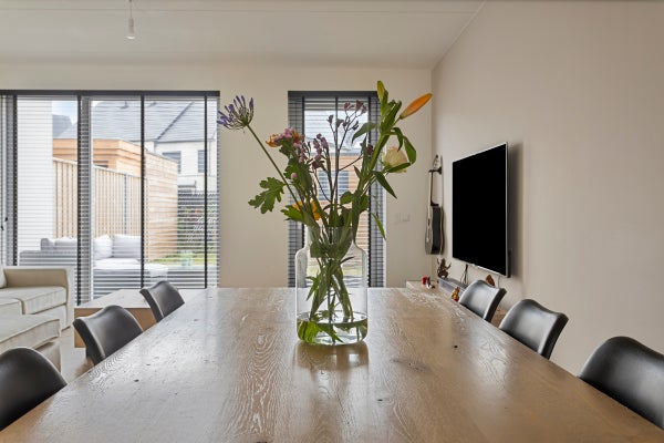 Deze verrassend ruime, energiezuinige tussenwoning, gebouwd in 2023, is instapklaar en perfect afgewerkt. De woning heeft 132 m² woonoppervlak, verdeeld over drie verdiepingen en beschikt over vier slaapkamers. Op de eerste verdieping vind je drie ruime slaapkamers en een moderne badkamer met inloopdouche. De grote zolder kan als vierde slaapkamer dienen en biedt mogelijkheden voor extra badkamers of slaapkamers. Aan de achterzijde ligt een verzorgde tuin van 58 m² op het oosten met een terras en een houten berging. Bovendien heb je een eigen parkeerplaats. Gelegen in het kindvriendelijke Blixembosch, dicht bij scholen, een winkelcentrum en groene speelplaatsen. De woning is goed bereikbaar met de auto en dichtbij het openbaar vervoer.