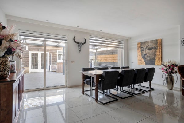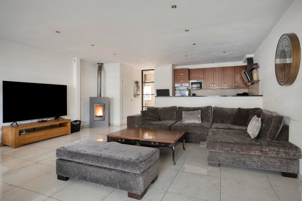 De royale woonkamer van 42 m² vormt het warme hart van de woning. Grote raampartijen zorgen voor een overvloed aan daglicht, waardoor de ruimte een open en luchtige uitstraling krijgt. De woonkamer is voorzien van vloerverwarming biedt volop mogelijkheden voor een comfortabele zithoek én een ruime eettafel, perfect voor gezellige avonden met familie en vrienden.
