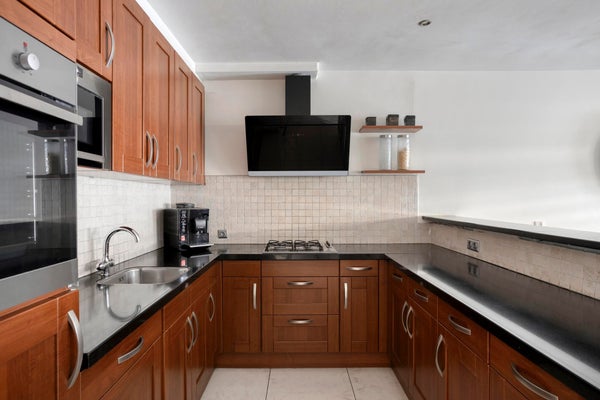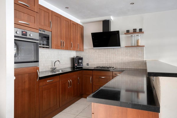 De keuken (2004) is een heerlijke plek voor iedereen die van koken houdt. De opstelling is praktisch en overzichtelijk, met voldoende werkruimte en slimme opbergmogelijkheden. De combinatie van moderne inbouwapparatuur – waaronder een gasfornuis, vaatwasser, afzuigkap, koelkast, magnetron en oven – maakt het bereiden van zowel snelle maaltijden als uitgebreide diners bijzonder prettig. De duurzame onverwoestbare granieten werkblad en de doordachte indeling zorgen voor extra gebruiksgemak. Het is een keuken waar je graag tijd doorbrengt.