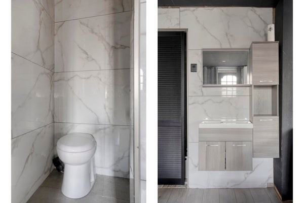 - een wastafel met bijpassende meubels voor extra opbergruimte;