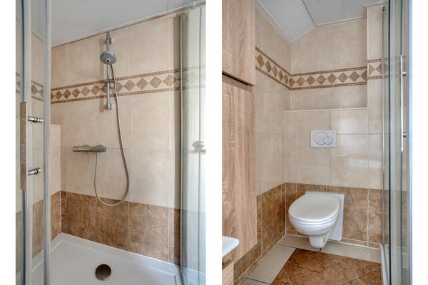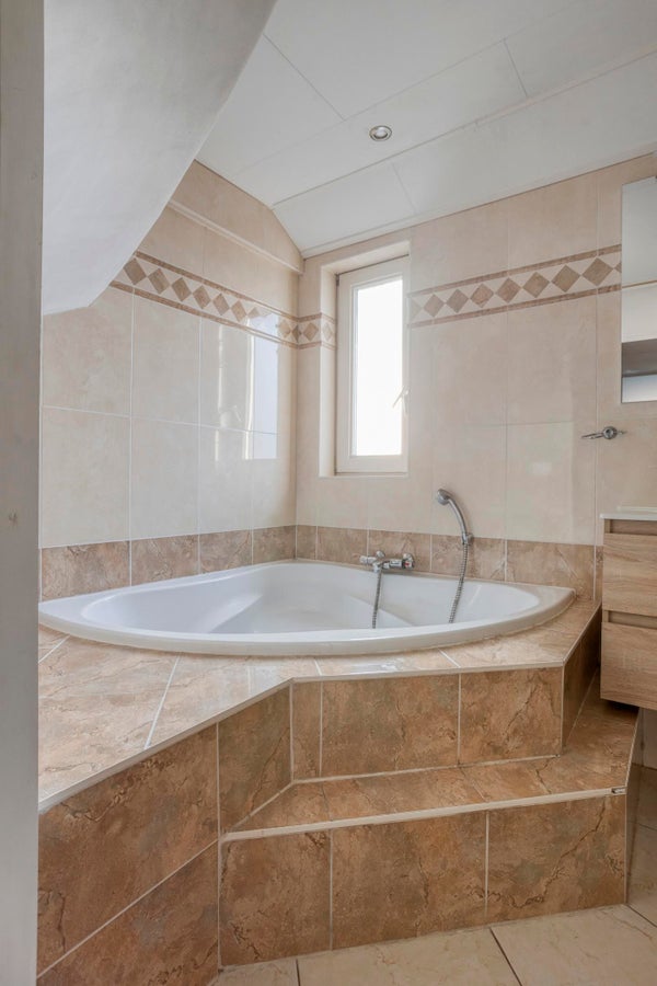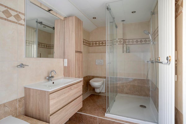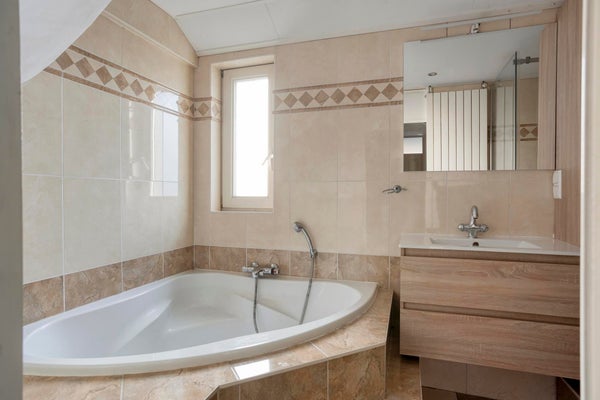 De badkamer van 8m² is een fijne, goed ingedeelde ruimte waar comfort centraal staat. De voorzieningen zijn compleet en modern:
