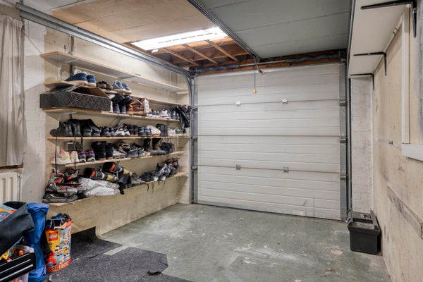 De aangebouwde stenen garage biedt ruimte voor één auto en extra opslagmogelijkheden. Parkeren op eigen terrein is hiermee comfortabel en veilig. Tevens ideaal voor fietsen en tuinspullen.