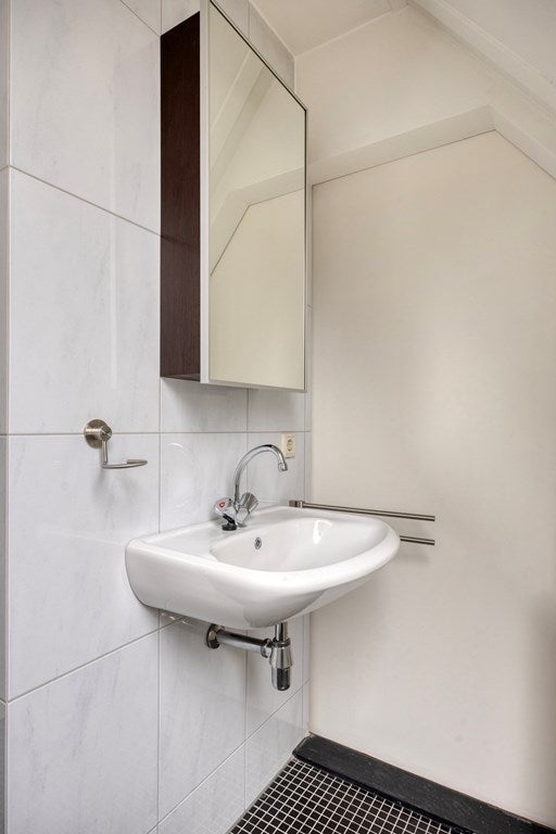 Vanuit de slaapkamer is er toegang tot de badkamer met Velux dakraam, vaste wastafel met