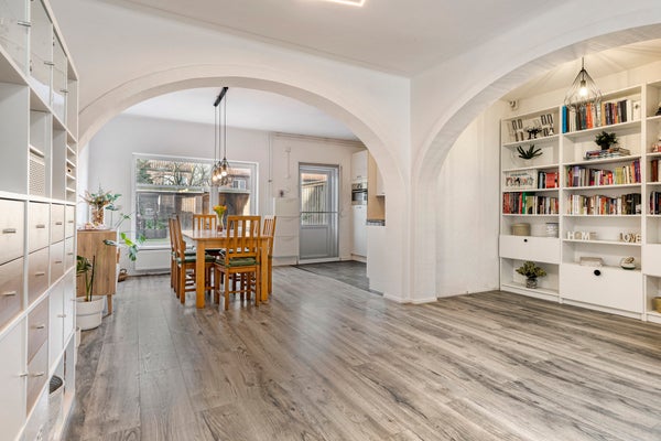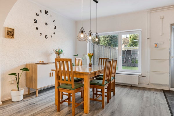 - De tussenwoning heeft een woonoppervlakte van 124 m² en beschikt over 6 kamers, waarvan 5 slaapkamers;