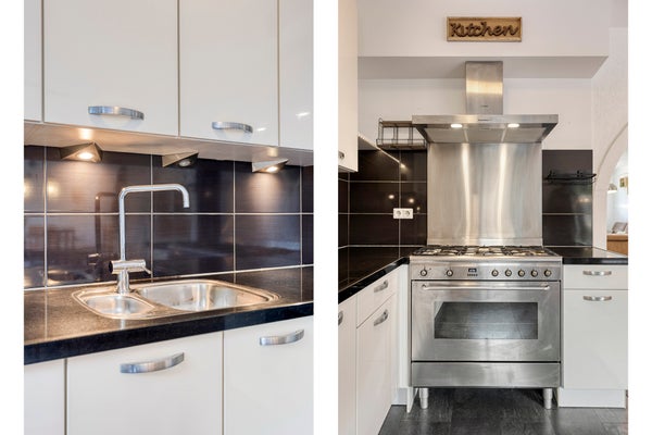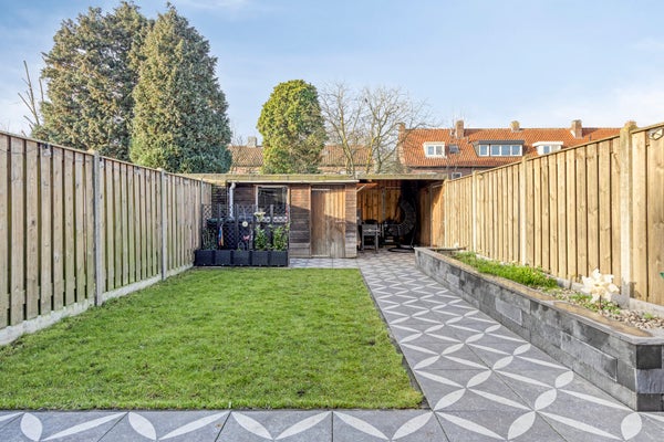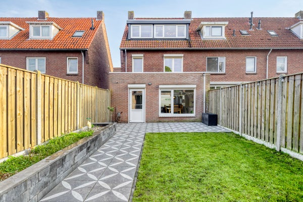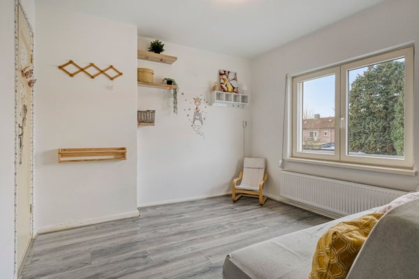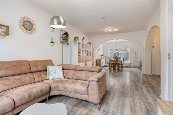 De begane grond heeft een ruime woon- en eetkamer met laminaatvloer en een open keuken met moderne apparatuur. Op de eerste verdieping zijn 3 slaapkamers en een moderne badkamer. De zolder biedt nog eens 2 slaapkamers met dakkapel. De achtertuin ligt op het westen, waardoor je volop van de zon kunt genieten en beschikt over een houten berging en een overkapping. De woning heeft een woonoppervlakte van 124 m², is goed geïsoleerd en heeft energielabel C.
