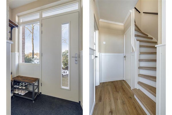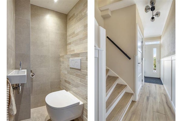 Je opent de deur en stapt binnen in een lichte, ruime hal waar meteen het gevoel van thuiskomen overheerst. In de hal vind je een keurige meterkast, een toilet en bergruimte voor jassen, tassen en schoenen.