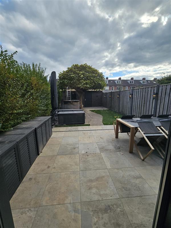 De tuin zelf is gelegen op het zuidoosten. Je geniet vrijwel de hele dag van de zon. De recent vernieuwde schutting en berging bieden niet alleen privacy maar maken de tuin ook praktisch. Met de vrije achterom zou je zelfs een bakfiets makkelijk kunnen parkeren.