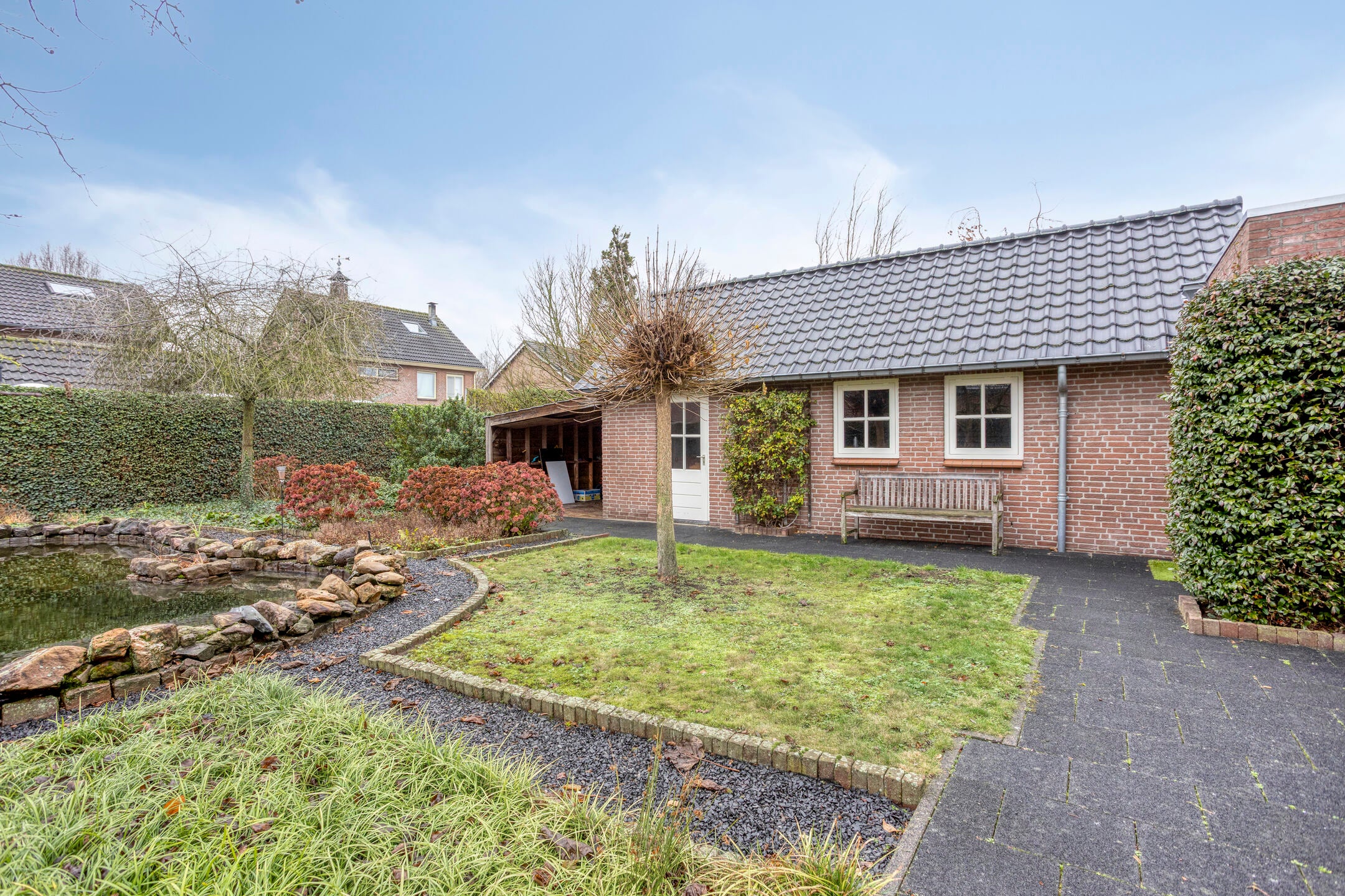 In de rustige, groene wijk ligt deze royale vrijstaande woning met garage en overdekt terras, tegenover ‘De Dompelaar’. Met een woonoppervlakte van 150 m² en een perceel van 599 m² biedt de woning veel ruimte. De sfeervolle woonkamer, met eikenhouten vloer en een speksteenkachel, geeft toegang tot de zonnige achtertuin. De ruime keuken, uitgerust met vloerverwarming en moderne apparatuur, is verbonden met de bijkeuken. Op de eerste verdieping zijn er drie slaapkamers en een complete badkamer. De bergzolder biedt extra opslagruimte. Buiten geniet je van een verzorgde tuin op het zuidwesten met terrassen en een vijver. Een ruime garage voor opslag en een oprit voor twee auto’s maken het geheel compleet. Elsendorp biedt een gemoedelijke sfeer met diverse voorzieningen en uitstekende verbindingen.