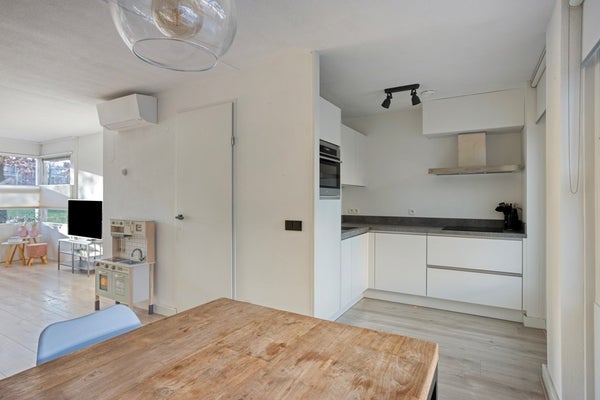 De keuken in hoekopstelling is vernieuwd in 2021 en is voorzien van een inductiekookplaat, afzuigkap, combi-oven, vaatwasser en koelkast. Er is voldoende opbergruimte.