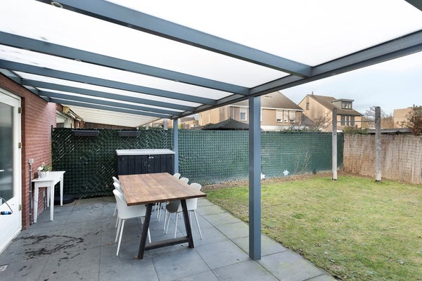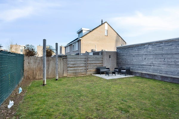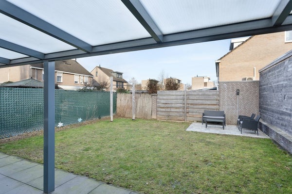 Vanuit de keuken is de overkapping bereikbaar, De gezellige tuin die op het noorden ligt is ruim en tevens te bereiken middels de garage aan de linkerzijde van de woning. De garage is inpandig vanuit de hal te bereiken en voorzien van een tegelvloer, elektrisch bedienbare sectionaalpoort en aansluitingen voor het witgoed. De voorgelegen oprit biedt parkeerruimte voor een auto en in de straat is voldoende vergunningsvrije parkeergelegenheid.
