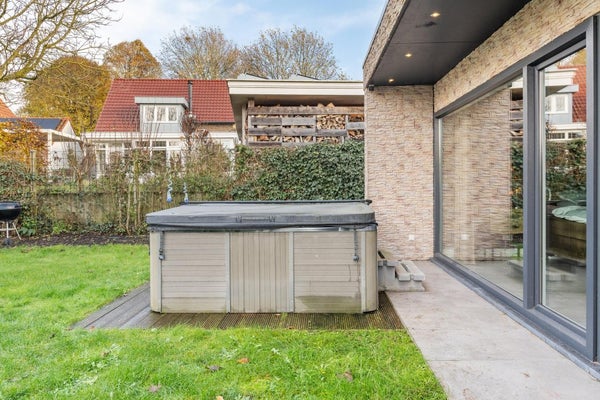Het souterrain heeft een inpandige garage en een wasruimte. Op de begane grond verwelkomt een natuurstenen hal u bij de living, die veel natuurlijk licht ontvangt. De open keuken met kookeiland is modern en uitgerust met hoogwaardige inbouwapparatuur. De hoofdslaapkamer heeft een ensuite badkamer. De achtertuin biedt een gazon, een houten schuur en een jacuzzi voor ontspanning.