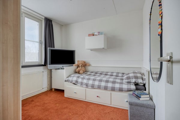 Overloop, 3 ruime slaapkamers, waarbij de 2 op de achterzijde gelegen slaapkamers beschikken over een in 2021 gerenoveerde dakkapel met in 2025 vernieuwd bitumen dak. De badkamer is voorzien van een bad, douche, 2e toilet, nieuw badkamer-meubel en design-radiator.