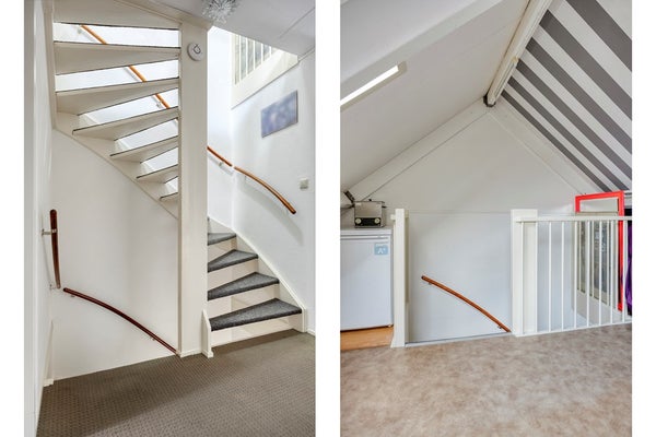 Met vaste trap kom je op de 2e verdieping met cv-ketel, wasmachineaansluiting en een Velux-dakraam. Op deze verdieping heb je de mogelijkheid om een 4e slaapkamer te maken en achter de knieschotten bevindt zich extra opbergruimte.