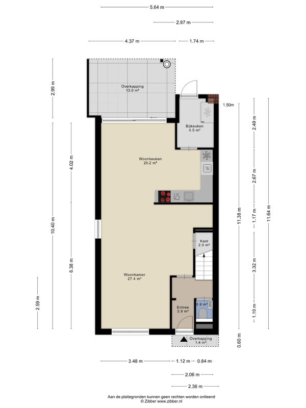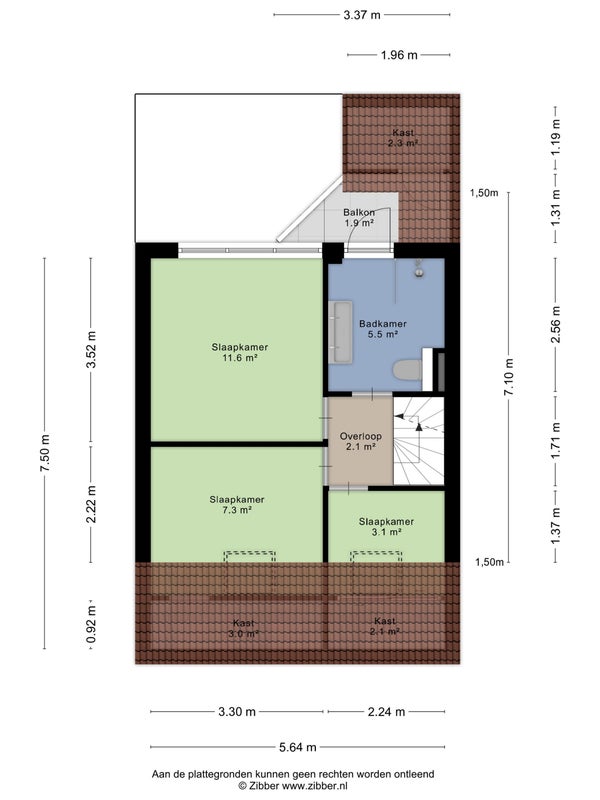 - De tussenwoning heeft een woonoppervlakte van 111 m² en beschikt over 5 kamers, waarvan 4 slaapkamers;
