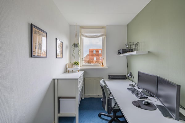 In de geliefde woonwijk "De Erven" staat deze goed onderhouden tussenwoning met 5 slaapkamers en een fijne tuin. De woning, gebouwd in 1988, beschikt over 116 m² woonoppervlakte en is gelegen op 163 m² eigen grond. De achtertuin van ongeveer 72 m² heeft een achterom en een zonnig terras, terwijl de vrijstaande stenen schuur is uitgerust met elektra. Op de begane grond vindt u een lichte woonkamer met een laminaatvloer en een moderne keuken. De eerste verdieping biedt drie ruime slaapkamers en een badkamer met ligbad en wastafel. De tweede verdieping, bereikbaar via een vaste trap, herbergt twee extra slaapkamers. Daarnaast is de woning goed geïsoleerd en voorzien van een HR CV-ketel uit 2024.