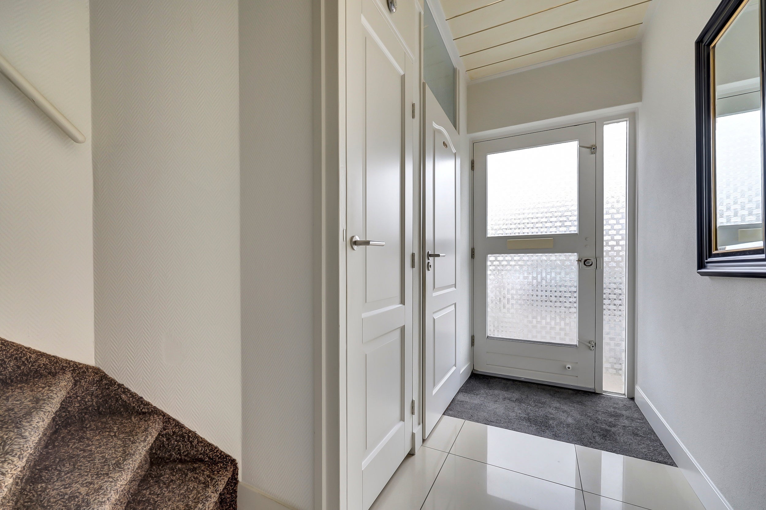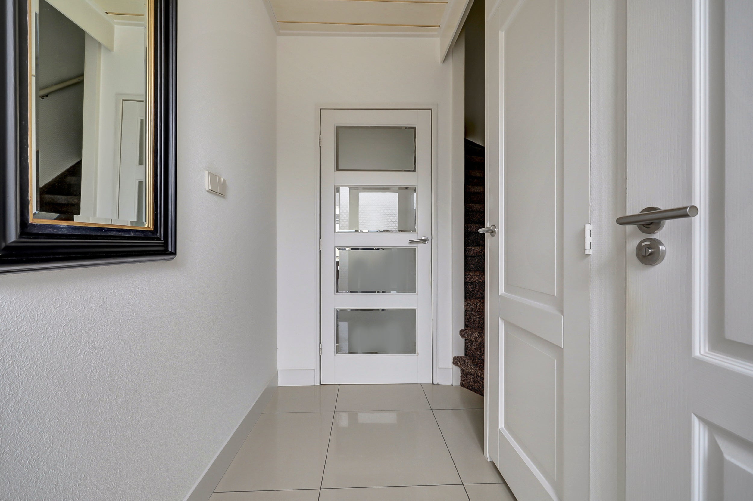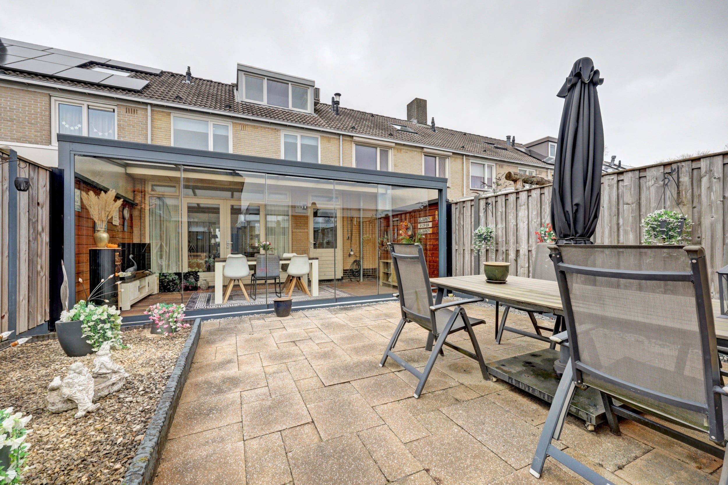 De tweede verdieping heeft een vaste trap naar een grote slaapkamer met dakkapel, uitgerust met airco. De tuin ligt op het zuiden, biedt privacy en heeft een stenen berging met elektra. De garage is via de steeg bereikbaar.
