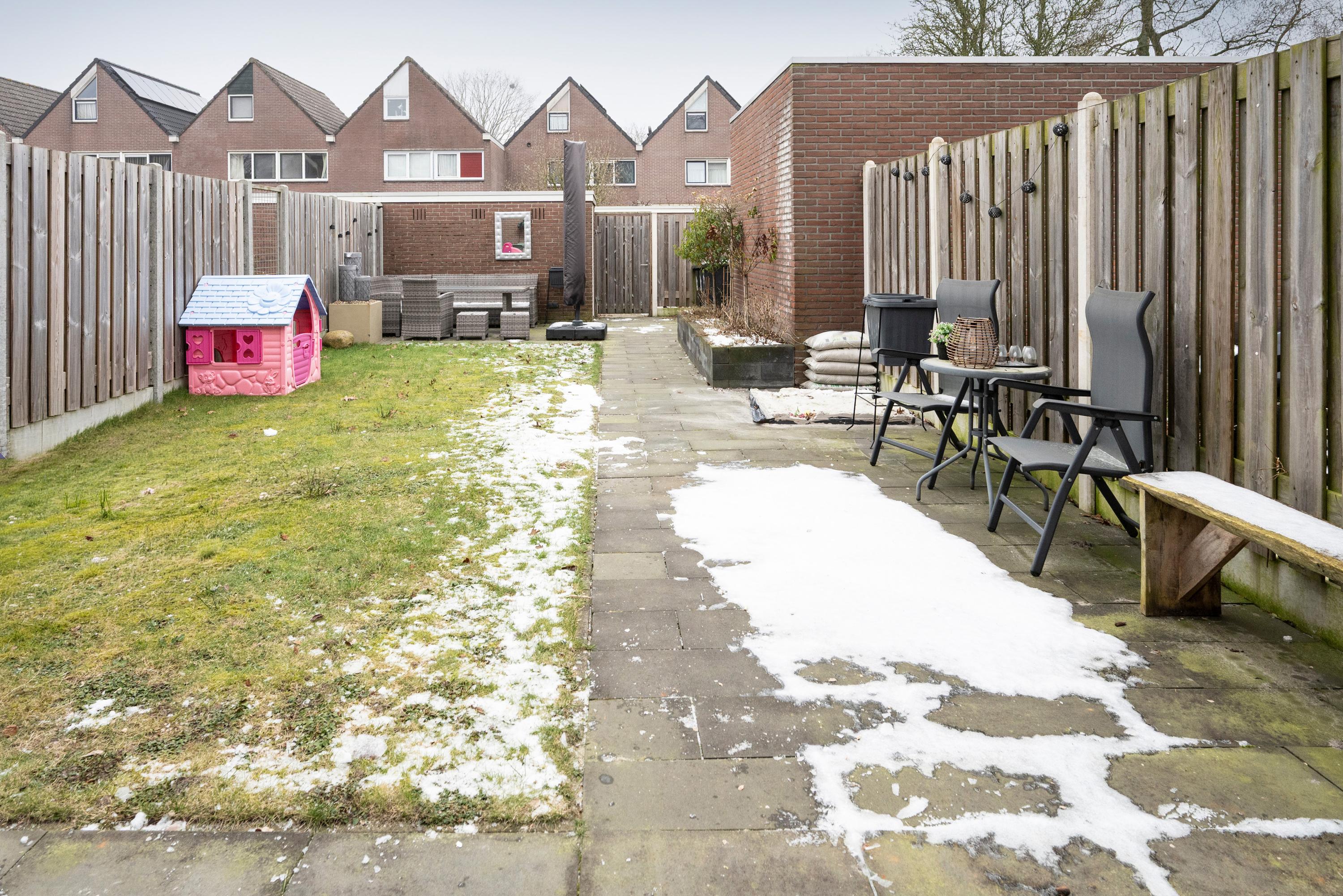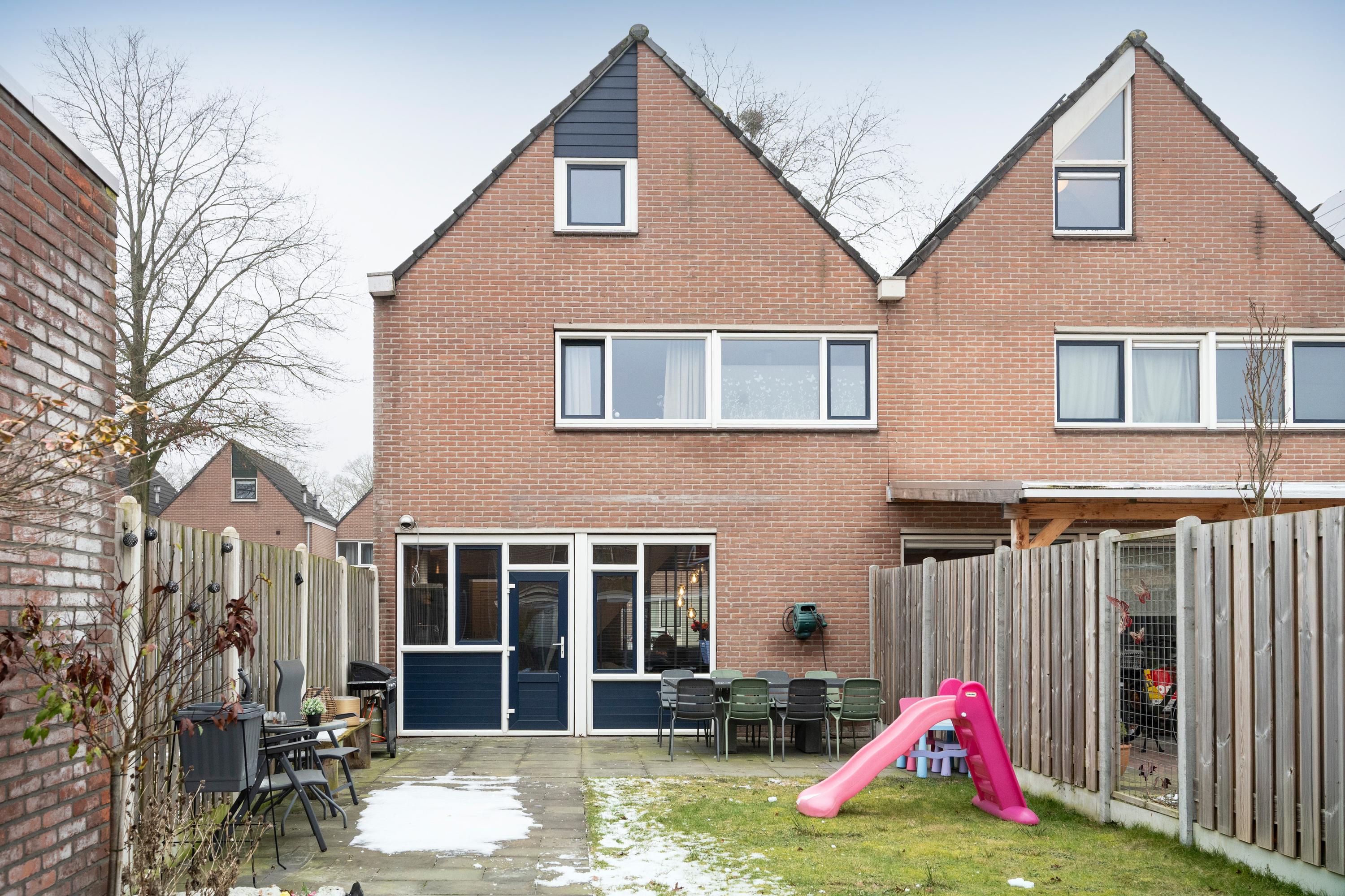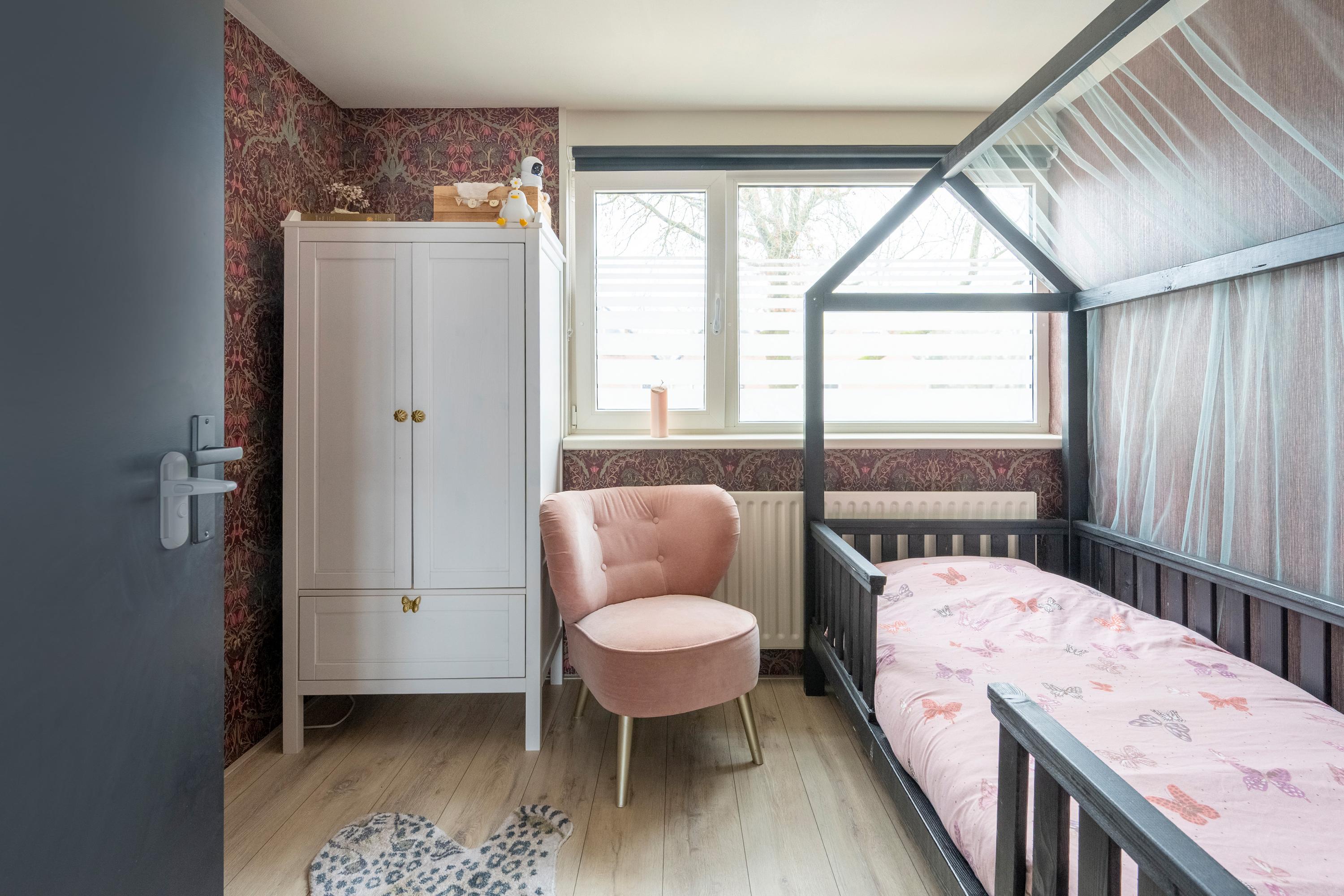 De indeling omvat op de begane grond een hal, toilet, woonkamer met pvc-vloer en open keuken, terwijl de eerste verdieping drie slaapkamers en een badkamer bevat. De tweede verdieping herbergt een slaapkamer en wasruimte. De woning heeft een woonoppervlakte van 112 m², staat op een perceel van 194 m² en is dichtbij voorzieningen zoals scholen en het Noordbargerbos.