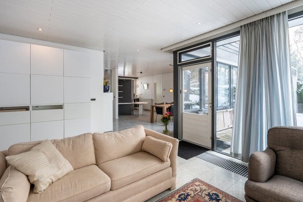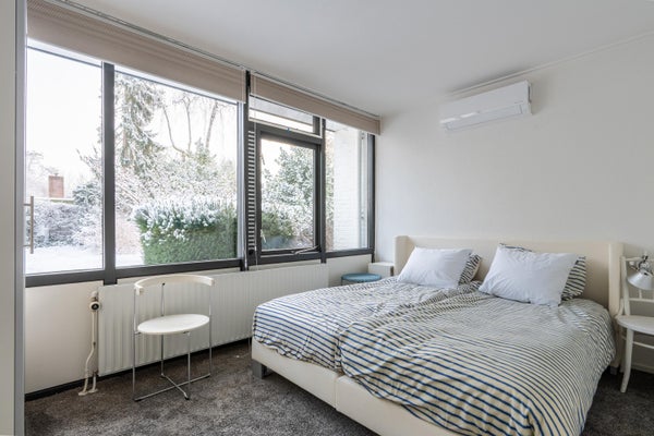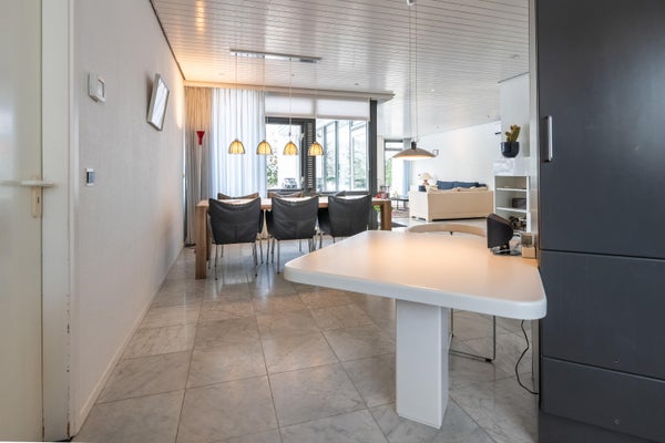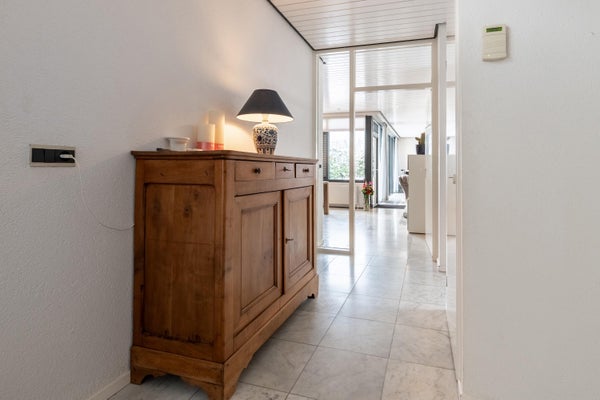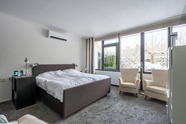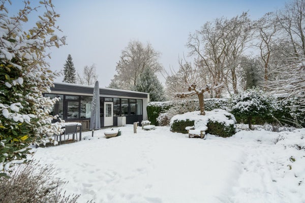 Deze ruime, goed onderhouden bungalow ligt in een bosrijke omgeving op een perceel van 761 m². Met 198 m² woonoppervlakte biedt de bungalow een royale woonkamer van 65 m², 3 slaapkamers, een werkkamer, 2 badkamers en 2 garages. Dankzij grote raampartijen geniet je van veel licht en een gevoel van rust binnen en buiten. In 2024 zijn er verbeteringen doorgevoerd, waaronder een nieuw dak, 29 zonnepanelen en 2 airco's. De indeling omvat een hal met toegang tot de garage, een bijkeuken, en een open keuken met moderne apparatuur. De tuin rondom de bungalow biedt privacy en is op het westen gelegen. Er is parkeergelegenheid op eigen terrein. Gelegen op een rustige doodlopende straat nabij natuurgebieden en een winkelcentrum. Energielabel B met goede isolatie.