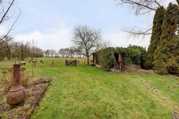 Met een erf van dit formaat kun je natuurlijk alle kanten mee op. Vroeger liepen hier koeien, eenden, kippen, schapen etc. Alleen de schapen zijn nu nog overgebleven en komen nieuwsgierig kijken als je dichtbij komt. Er zijn nog diverse kleine opstallen aanwezig zoals een kas en enkele schuurtjes. Een deel van de tuin is aangelegd als siertuin met daarin een vijver en een ander deel wordt als moestuin gebruikt. Verder beschik je over een riant weiland dat aan de achterzijde grenst aan een sloot met hoge bomen erlangs.