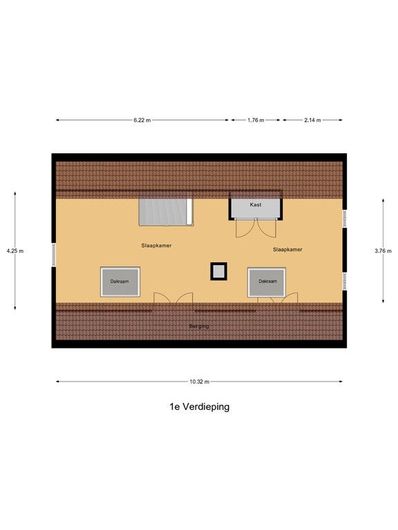 Op de 1e verdieping is één grote slaapruimte met daarin een dakvenster en de Cv-ketelopstelling. Hier zou je gemakkelijk twee ruime slaapkamers kunnen realiseren.
